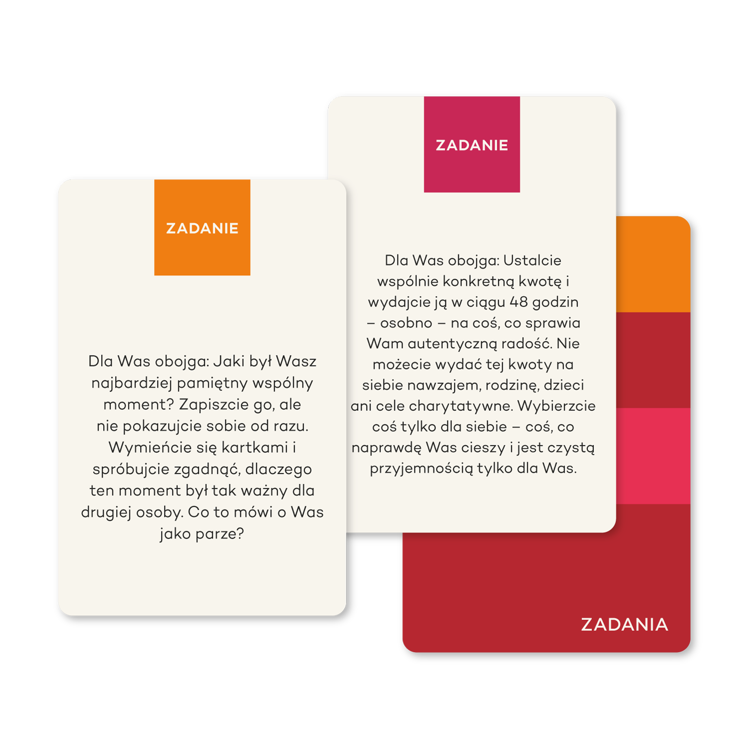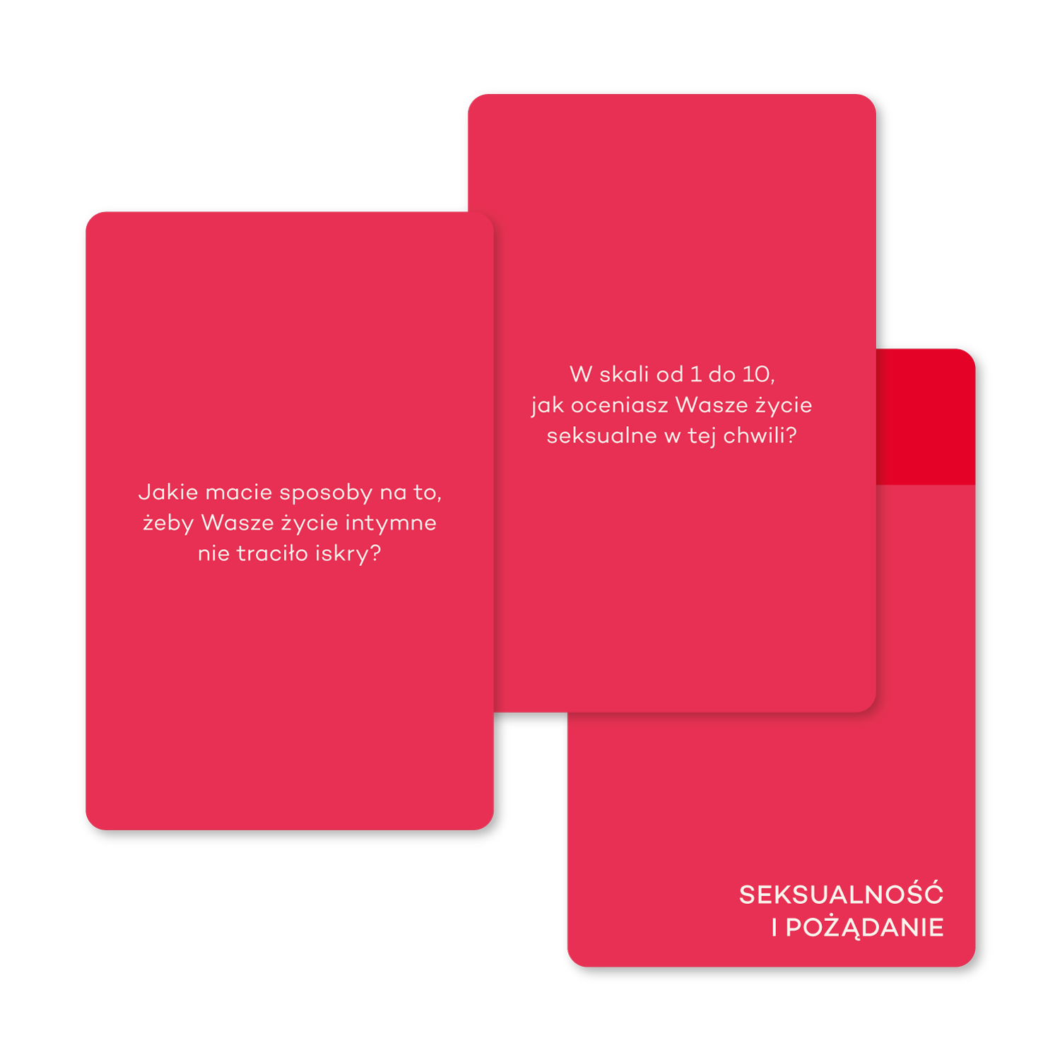 Każde pytanie zostało stworzone po to, aby wzmocnić Waszą więź. Odkryjcie Wasze języki miłości, podejmijcie wspólne wyzwania, rozmawiajcie otwarcie o Waszym życiu seksualnym i na nowo rozpalcie tę wyjątkową iskrę między Wami.
